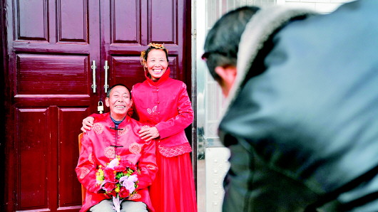 59岁的刘仁香和64岁的赖际林是第五对参与补拍婚纱照的夫妇,他们两口子是1986年结婚的。前几年,为了医治身患重疾的赖际林,全家几乎用尽了所有积蓄,2014年,夫妇二人成了村里建档立卡贫困户。