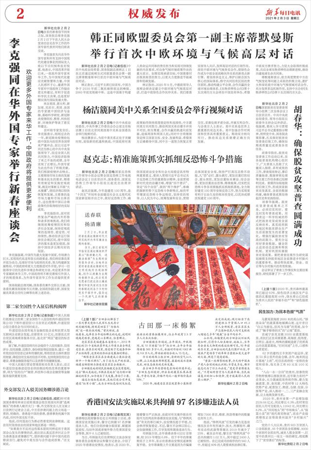 | ( 2021-02-03 ) 稿件来源:新华每日电讯 权威发布 |