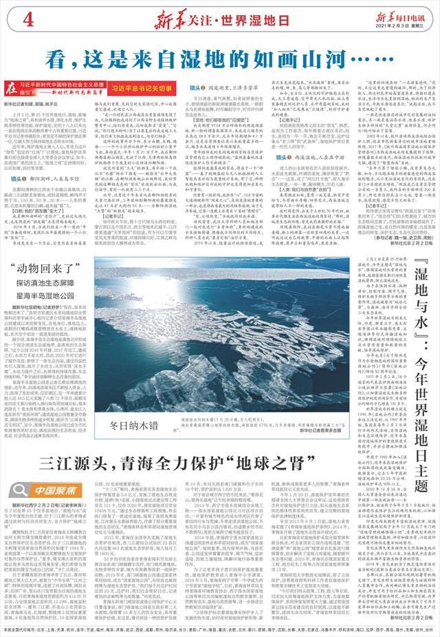 | ( 2021-02-03 ) 稿件来源:新华每日电讯 新华关注·世界湿地日 |
