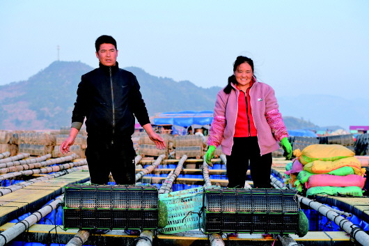 过完彝族新年后,“春运母亲”巴木玉布木与丈夫巫其石且日前从四川凉山彝族自治州老家辗转来到福建省霞浦县溪南镇海域,从事海上渔排海参养殖。几天来,从未在海上生活过的巴木玉布木与丈夫逐渐适应了海浪翻滚与脚下渔排的摇晃,海参喂养技术也越来越熟练。巴木玉布木说,现在成功脱贫,但仍然要努力工作,让一家人的日子越过越好。 新华社记者姜克红摄