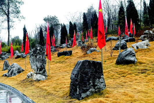 “一草一木一忠魂,一山一石一丰碑”。在脚山铺阻击战旧址上新建的红军长征湘江战役纪念园内,一大片缓坡散布着形状各异的巨石。