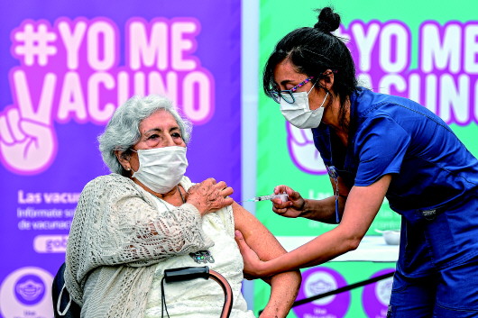 2月3日,一名老人在智利圣地亚哥市中心一家疫苗接种中心接种中国产新冠疫苗。新华社发(豪尔赫·比列加斯摄) |