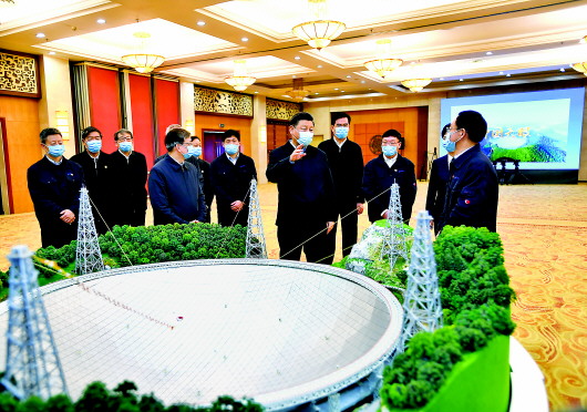 5日上午,习近平亲切会见“中国天眼”项目负责人和科研骨干,听取“中国天眼”建设历程、技术创新、国际合作等情况介绍。 新华社记者谢环驰摄