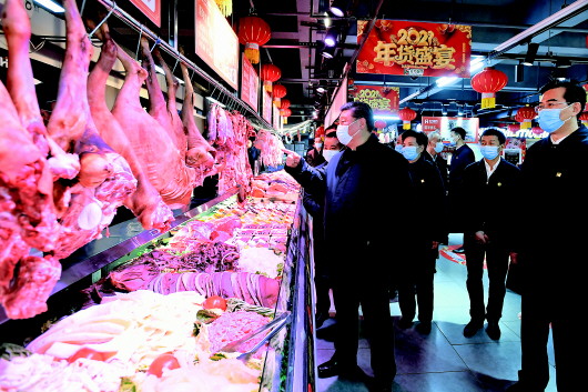 4日下午,习近平在贵阳市观山湖区合力惠民生鲜超市,察看春节前市场供应、年货供销、物价运行等情况。 新华社记者李学仁摄
