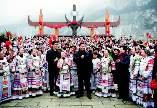 二月三日至五日,中共中央总书记、国家主席、中央军委主席习近平来到贵州考察调研,看望慰问各族干部群众,向全国各族人民致以美好的新春祝福。这是三日下午,习近平在毕节市黔西县新仁苗族乡化屋村文化广场上,向全国各族人民、港澳台同胞和海外侨胞拜年。