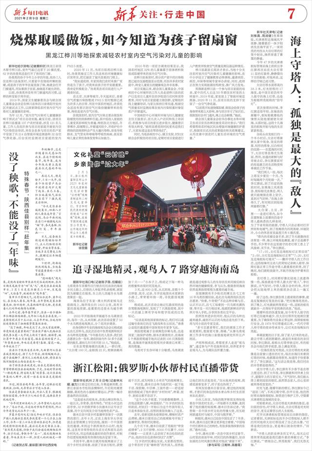 | ( 2021-02-09 ) 稿件来源:新华每日电讯 新华关注·行走中国 |
