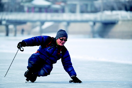 “对于冰刀的选择也是很有讲究的,既不能太长也不能太短,太长转弯时不够灵活,太短不易保持平衡和稳定,一般的冰球刀比较适合。”李春雷说。