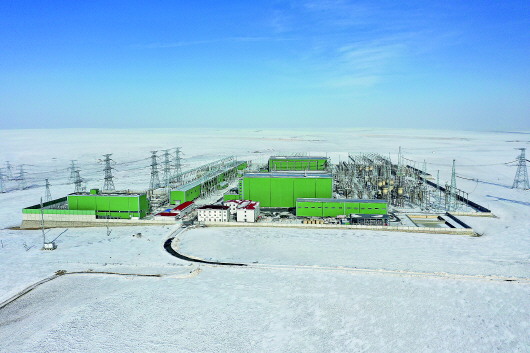 这是冬日雪原中的锡盟换流站(2月11日摄)。