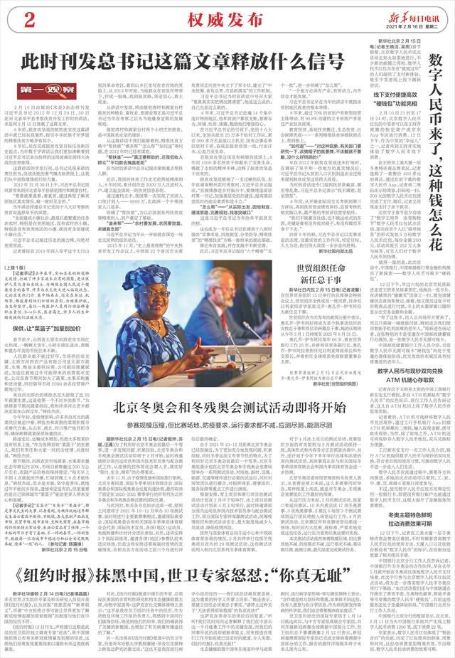 | ( 2021-02-16 ) 稿件来源:新华每日电讯 权威发布 |