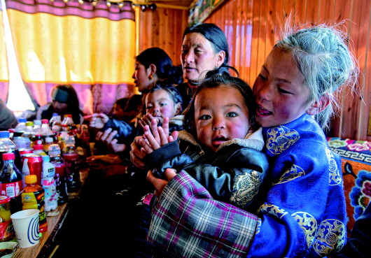 藏历新年期间,川西北高原若尔盖县、红原县牧区的藏族群众走亲访友,团聚在牧场暖棚里。一阵阵欢声笑语让暖棚里更加暖意融融。