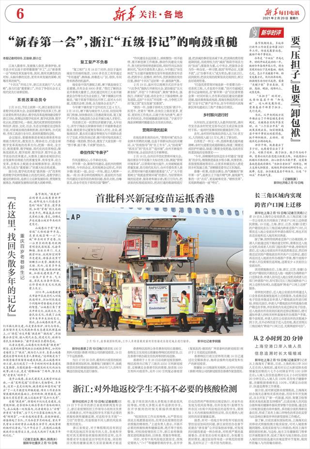 | ( 2021-02-20 ) 稿件来源:新华每日电讯 新华关注·各地 |