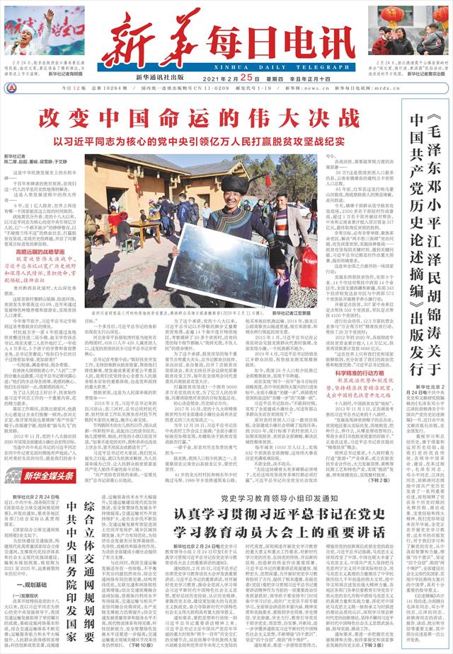 在以习近平同志为核心的党中央坚强领导下,历经苦难辉煌的中华民族,书写壮丽篇章的中国人民,必将在前进道路上创造新的更大奇迹! 新华社北京2月24日电
