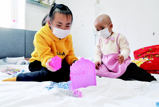 在“助医小家”,哆哆(右)与姐姐一起玩玩具(二月十日摄)。