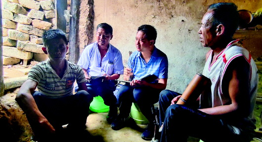 2019年,吴志宏(右二)在村民家中走访。新华社发