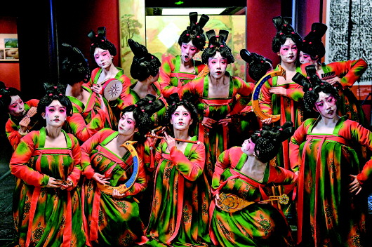 郑州歌舞剧院的演员在河南博物院录制元宵奇妙夜节目(2月20日摄)。新华社记者李安摄 |