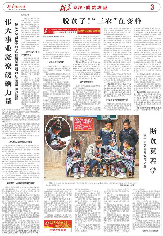 | ( 2021-03-01 ) 稿件来源:新华每日电讯 新华关注·脱贫攻坚 |