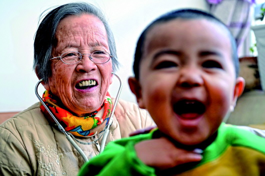 路生梅在佳县家里为患儿义诊(1月16日摄)。