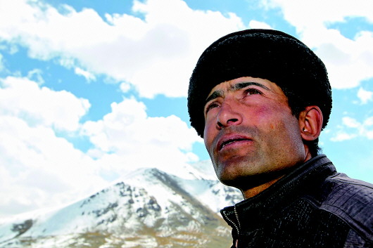 拉齐尼·巴依卡在新疆红其拉甫边境线的巡逻途中(2011年9月23日)。