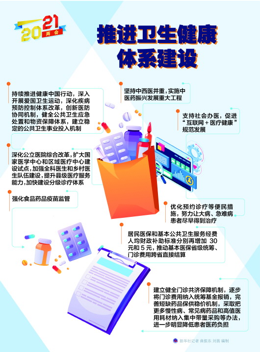 “把保障人民健康放在优先发展的战略位置”“深化医药卫生体制改革”“坚持中西医并重和优势互补,大力发展中医药事业”……围绕全面推进健康中国建设,纲要草案做出周密部署。