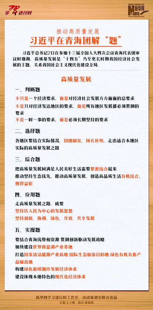 3月7日下午,在参加十三届全国人大四次会议青海代表团审议时,围绕“高质量发展”,习近平总书记进行了详细阐释。