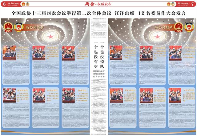 据新华社北京3月7日电全国政协十三届四次会议7日上午在人民大会堂举行第二次全体会议。中共中央政治局常委、全国政协主席汪洋出席会议。12名委员作大会发言。