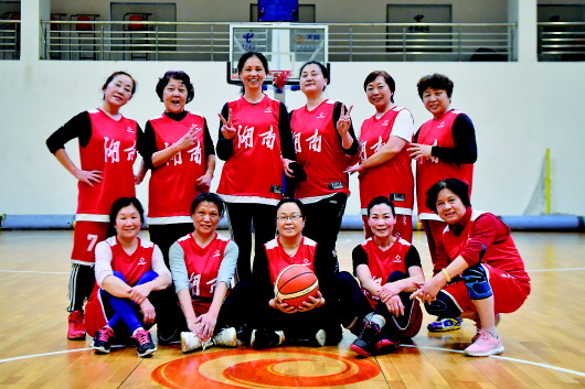 长沙有一支湖南“飞跃”女子篮球队,球队成立于2011年,5名“元老”因为对篮球的热爱走到了一起,组建成队,后来逐渐发展壮大。现在,球队共有18名队员,平均年龄60岁,最年长的65岁。她们大部分具有运动基础,学生时代练习过包括篮球在内的不同体育项目,有的成为专业运动员,有的工作后一直坚持体育运动。