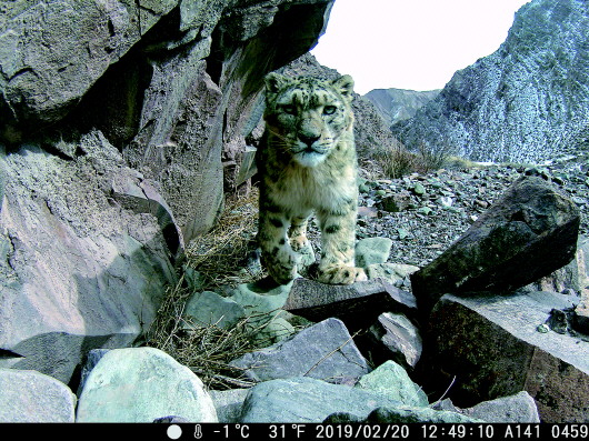 2019年2月20日,在祁连山国家公园青海片区,红外相机拍摄到的雪豹照片。