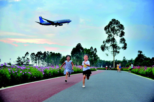 2018年6月30日,几位小朋友在成都空港花田游玩。张青青摄 |