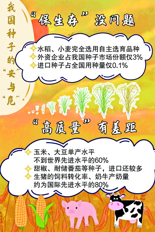 “农业芯片”——种子的问题,在今年两会广受关注。政府工作报告指出,保障粮食安全的要害是种子和耕地。多名代表委员提交了相关建议和议案。农业农村部部长唐仁健表示,正会同有关部门研究制定打好种业翻身仗行动方案,力求用10年左右的时间,实现重大突破。