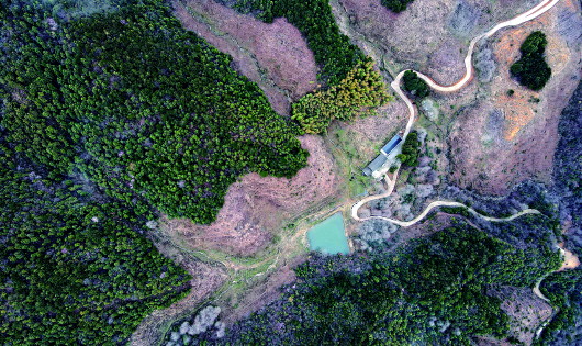 3月9日拍摄的歙县桂林国有林场瓦上管护站(无人机照片)。