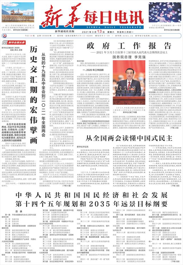 | ( 2021-03-13 ) 稿件来源:新华每日电讯 要 闻 |