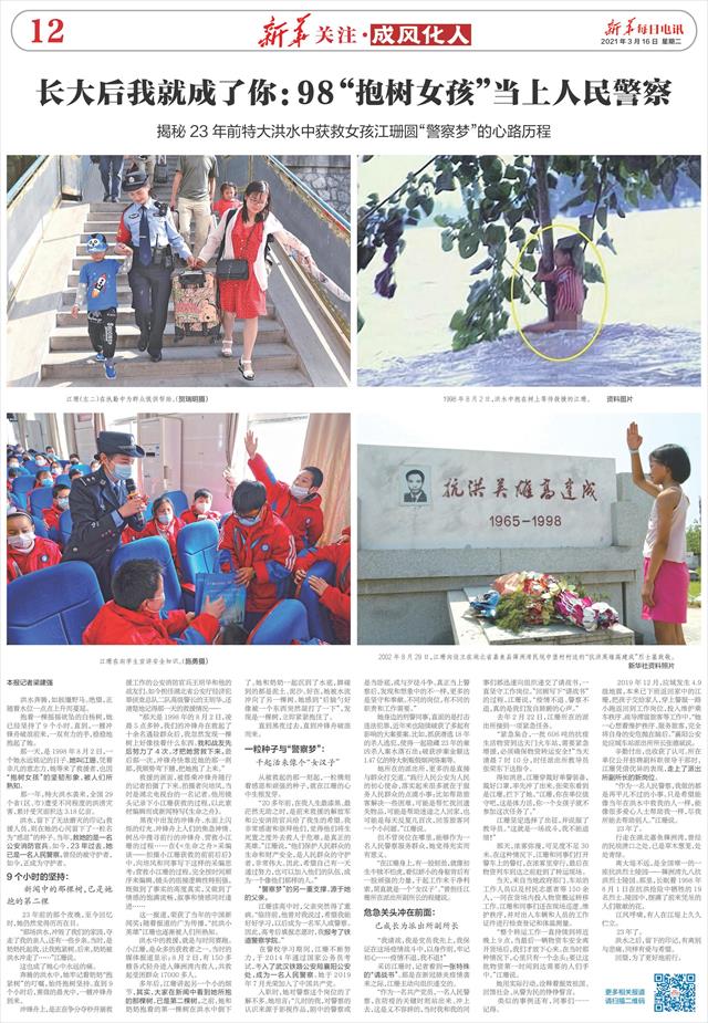 洪水,留下了无法磨灭的印记;救援人员,则在她的心间留下了一粒名为“感恩”的种子。当年,救她的是一名公安消防官兵。如今,23年过去,她已是一名人民警察。曾经的被守护者,如今,正成为守护者。