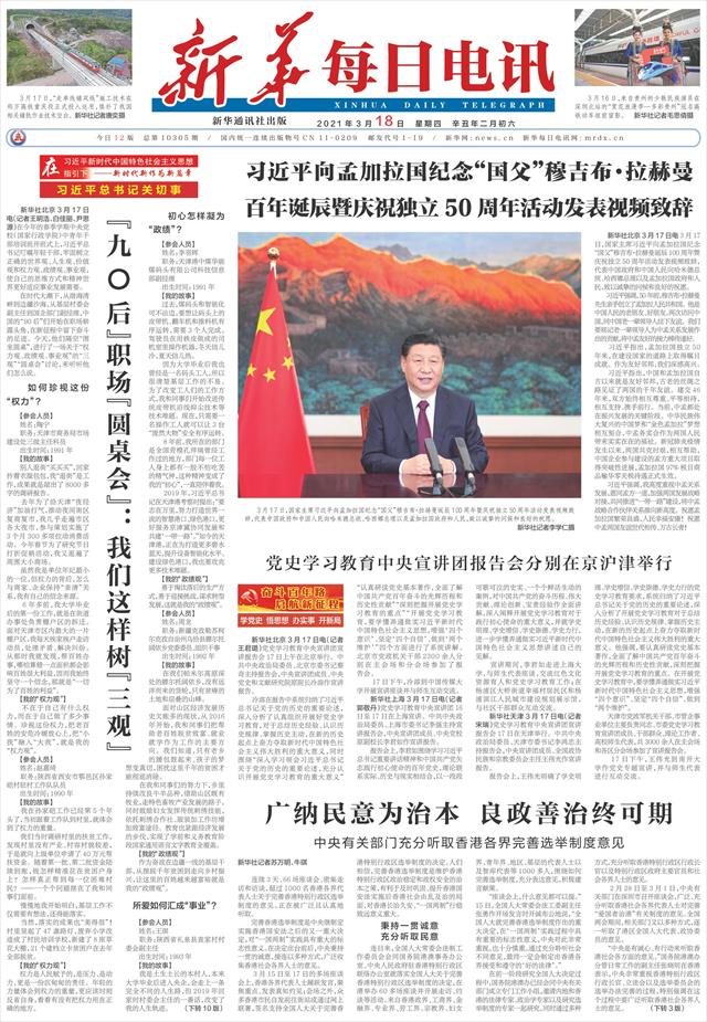 | ( 2021-03-18 ) 稿件来源:新华每日电讯 要 闻 |