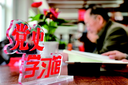 3月16日,黄骅市骅中街道信誉楼社区居民在社区党史学习馆学习党史。河北省黄骅市骅中街道办事处利用社区活动中心图书室搭建起社区党史学习馆,吸引了辖区居民及周边机关、企事业单位干部职工前来学习、阅读。 新华社记者骆学峰摄