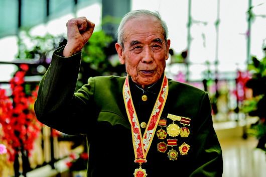 今年91岁的老党员王在邦,曾作为一名解放军战士参加1949年开国大典阅兵式。第二年,他跨过鸭绿江,入朝作战。1958年4月,王在邦带着妻子坐了三天三夜的火车,来到黑龙江边陲小城密山,开发北大荒。