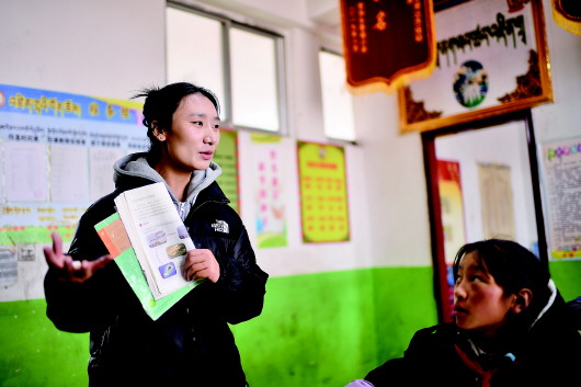 3月16日,索加乡寄宿小学语文老师查日在为学生上课。 |