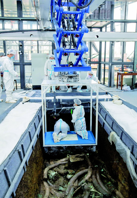 这是一次科技助力的考古。在发掘过程中,考古工作者充分运用现代科技手段,建设考古发掘舱、集成发掘平台、多功能发掘操作系统,配置了现场应急保护与分析检测设备等,为考古信息采集、文物安全防护提供了有效保障。此外,考古工作者还为此次考古发掘搭建了信息平台,对考古工作中的文物数据、影像资料、环境监控数据等进行全面记录和科学管理。