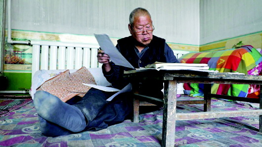 宋高柱的学习资料(3月17日摄)。 本报记者王皓摄 |