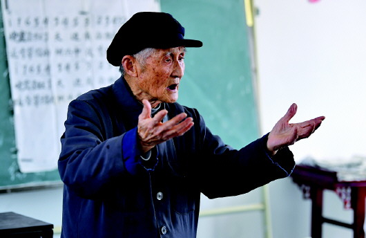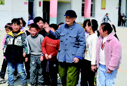 “晚风你轻轻吹吧,快吹到田野上,当晚霞染红了天边,我们快乐歌唱……”在安徽省滁州市定远县朱湾小学教室里,92岁的音乐教师严明友,教孩子们练习歌曲《晚风》。