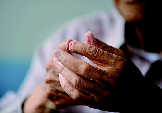 3月25日,江西瑞金叶坪乡敬老院,老红军张茂钊在晒太阳。本报记者刘彬摄 |