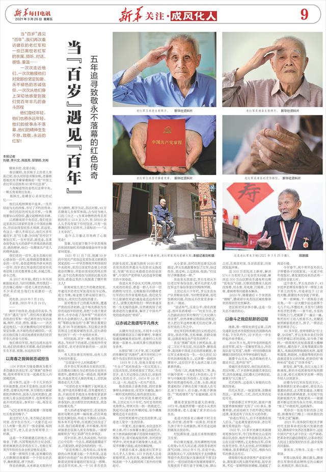 我们党的一百年,是矢志践行初心使命的一百年,是筚路蓝缕奠基立业的一百年,是创造辉煌开辟未来的一百年。百岁老红军是我们党百年风雨征程上的无数青春之我、赤诚之我、奋斗之我。