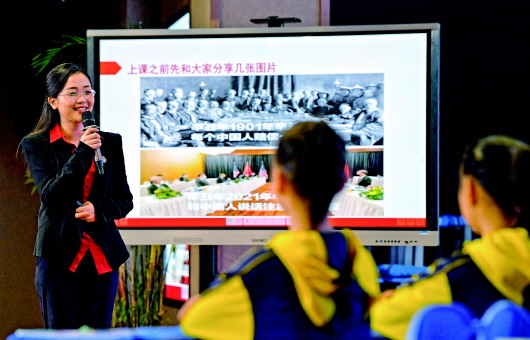 3月27日,在南昌市二十八中湾里实验学校,学生在思政课上学习党史知识。当日,江西南昌市二十八中教育集团湾里实验学校举行党史教育进校园主题活动,通过思政课、歌舞、主题朗诵等活动,向学生普及党史知识。 新华社记者彭昭之摄