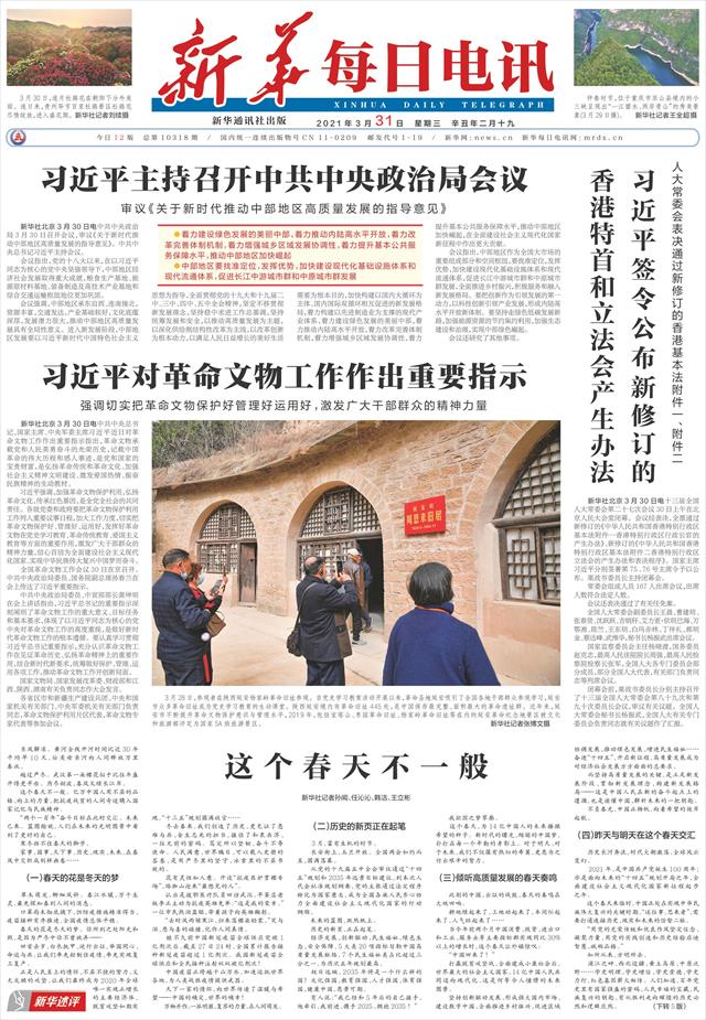 | ( 2021-03-31 ) 稿件来源:新华每日电讯 要 闻 |