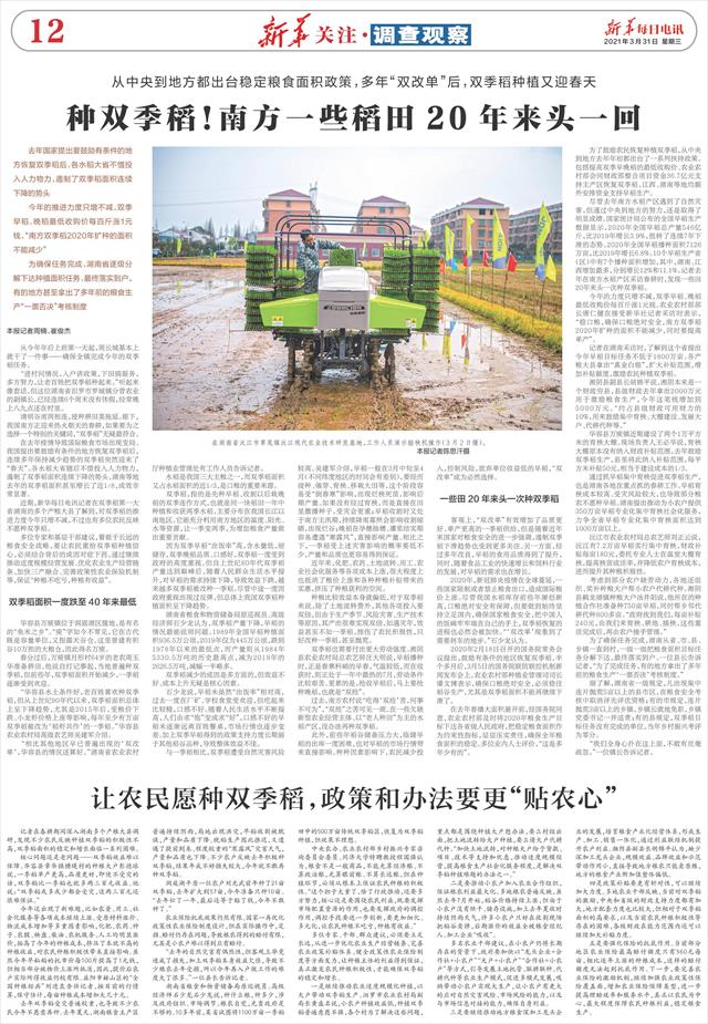 从中央到地方都出台稳定粮食面积政策,多年“双改单”后,双季稻种植又迎春天 |