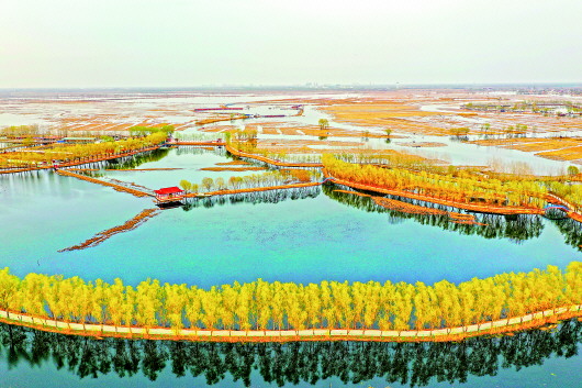 3月16日拍摄的白洋淀风光(无人机照片)。 新华社记者牟宇摄