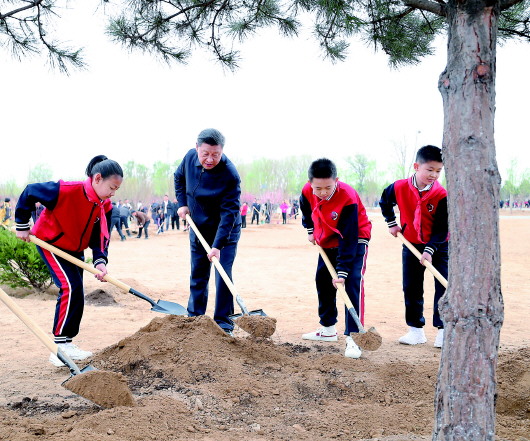 习近平强调,美丽中国建设离不开每一个人的努力。美丽中国就是要使祖国大好河山都健康,使中华民族世世代代都健康。要深入开展好全民义务植树,坚持全国动员、全民动手、全社会共同参与,加强组织发动,创新工作机制,强化宣传教育,进一步激发全社会参与义务植树的积极性和主动性。广大党员、干部要带头履行植树义务,践行绿色低碳生活方式,呵护好我们的地球家园,守护好祖国的绿水青山,让人民过上高品质生活。