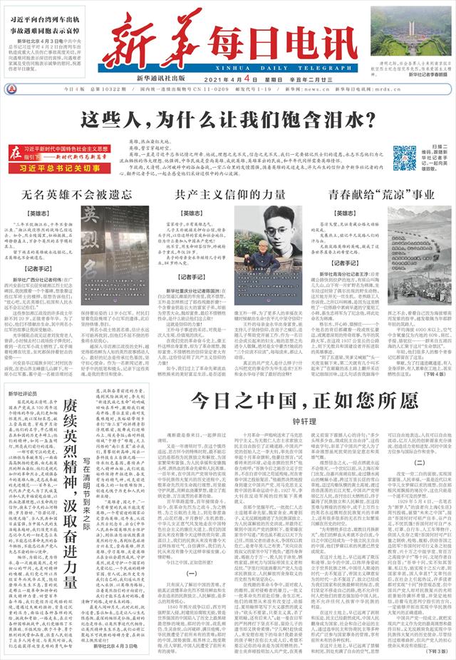 | ( 2021-04-04 ) 稿件来源:新华每日电讯 要 闻 |