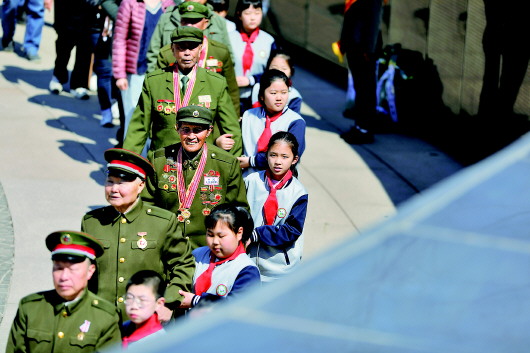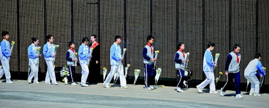 4月4日,几位志愿军老战士代表瞻仰烈士英名墙。