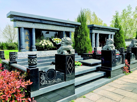 3月30日,记者来到一家公益性公墓时,看到有一排豪华阔气的家族墓,上面刻有某氏家族字样。