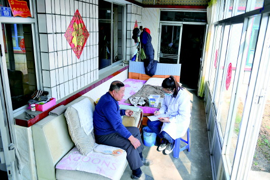 4月6日,在辽宁省东港市前阳镇前阳村,孙艺为患者登记健康信息。 |